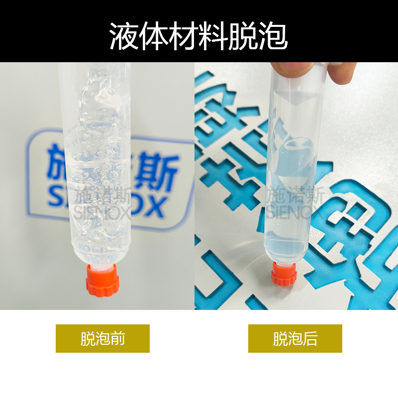 By using the centrifugal force from planetary rotation and the shearing force from rotation for mixing, supplemented by a vacuum pump to extract gases, tiny bubbles in the liquid can be efficiently removed, improving product quality.