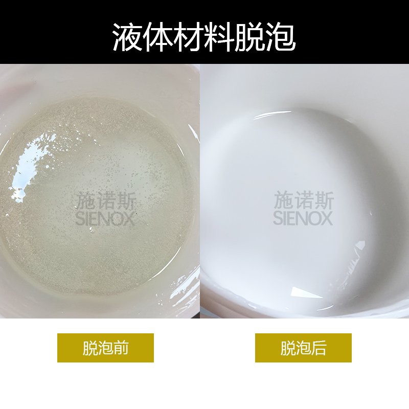 By using the centrifugal force from planetary rotation and the shearing force from rotation for mixing, supplemented by a vacuum pump to extract gases, tiny bubbles in the liquid can be efficiently removed, improving product quality.